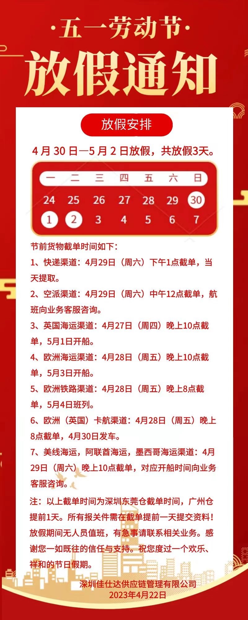 我司2023五一劳动节放假通知
