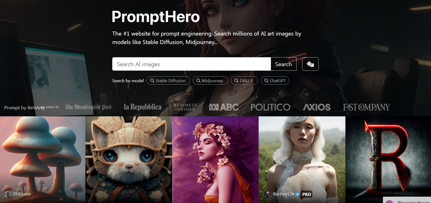 4、Prompthero。这是一个免费的prompt(提示)搜索引擎,支持Stable Diffusion、Midjourney、DALL-E、ChatGPT等主流AI工具,对于不熟悉各个工具prompt输入的卖家来说,可以大幅提升工作效率。